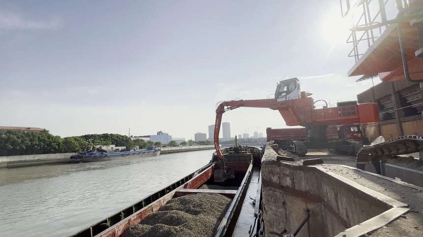 邦立重機180大型軌道式抓料機投入使用,大受客戶好評!
